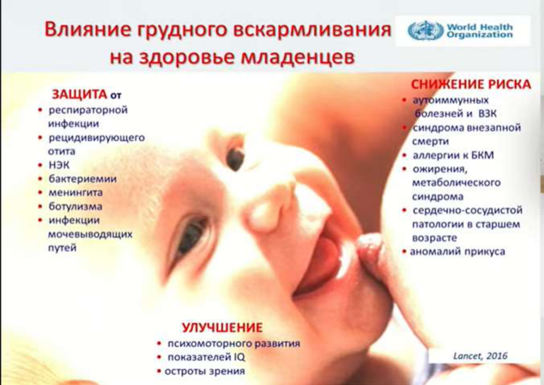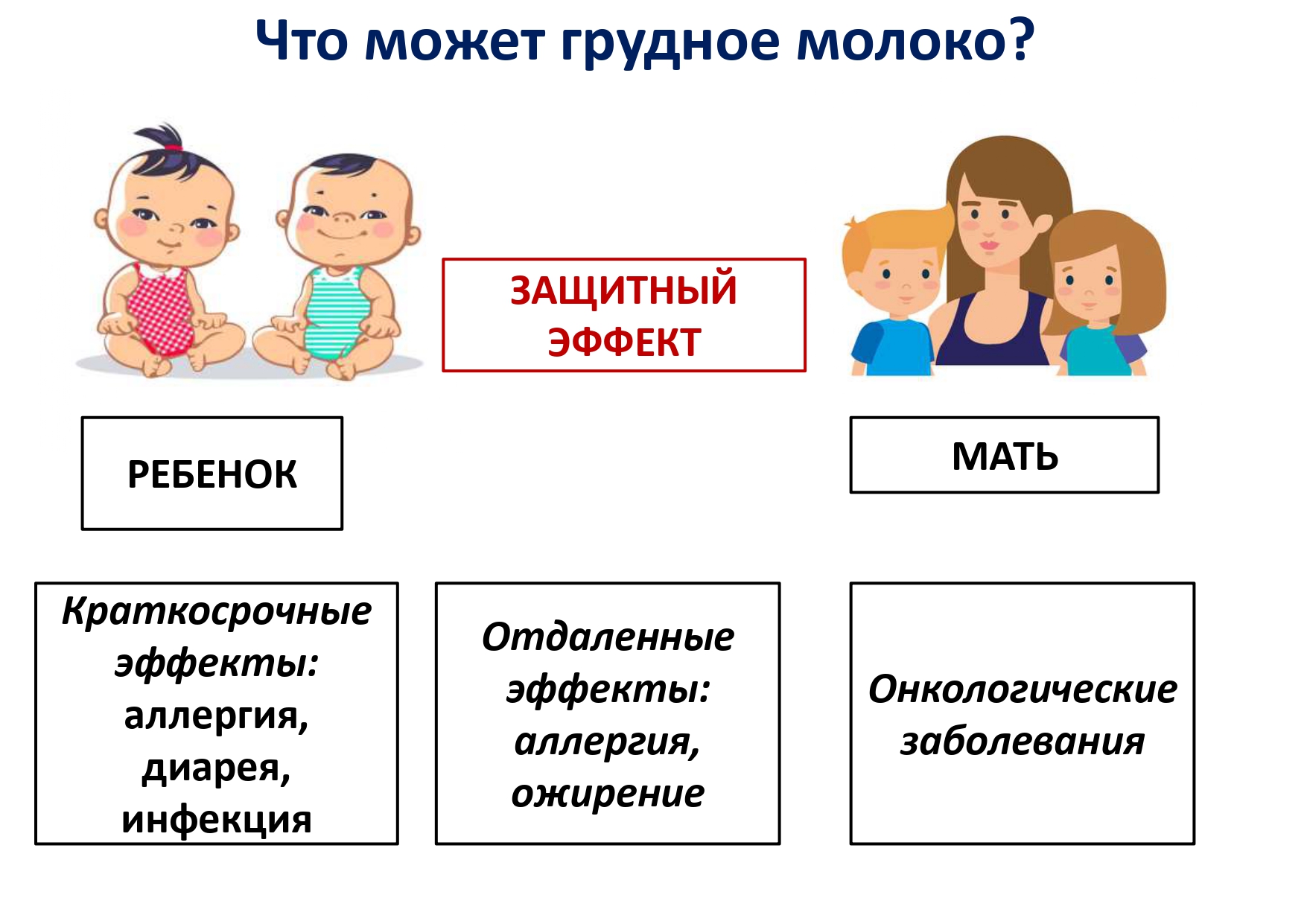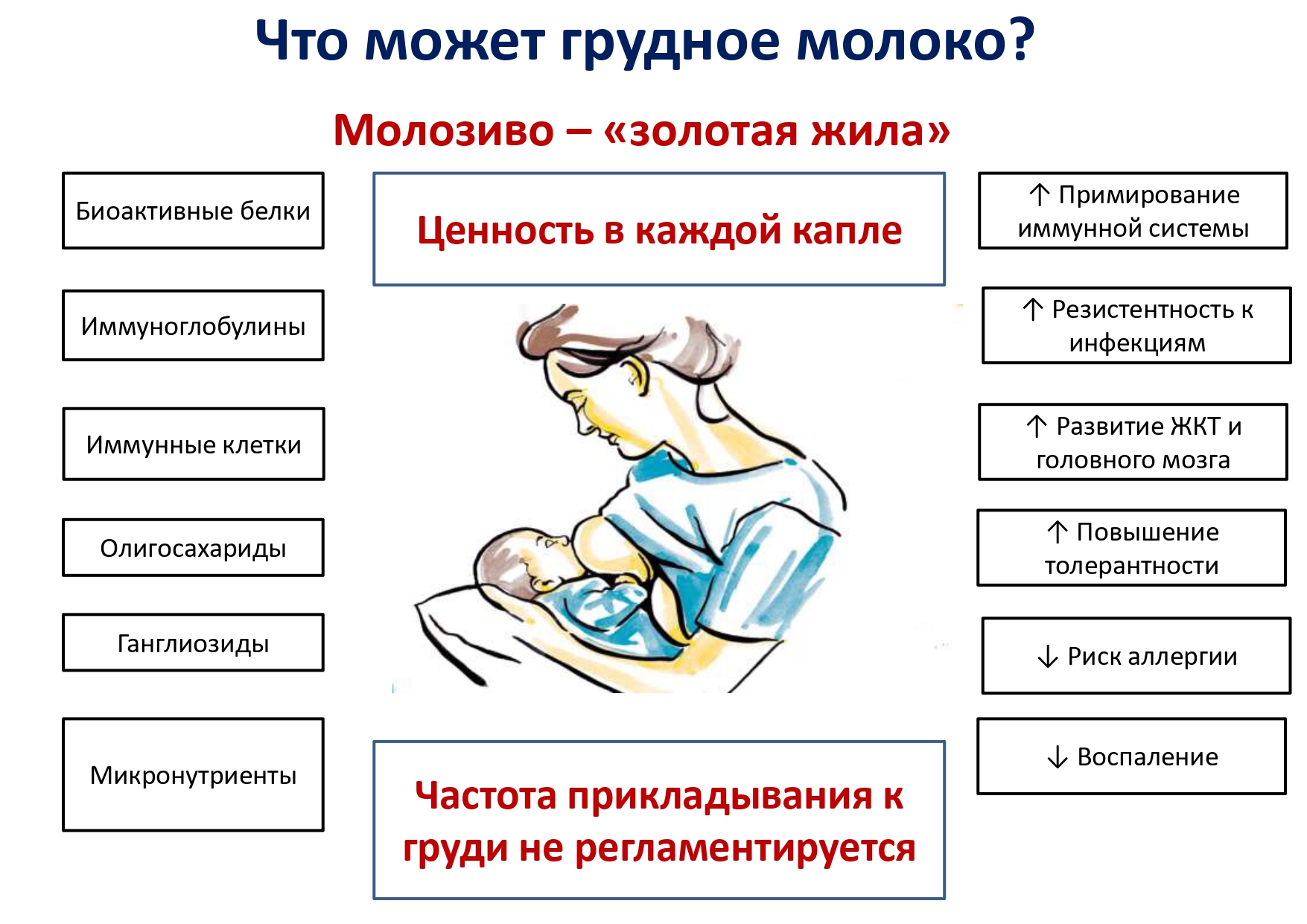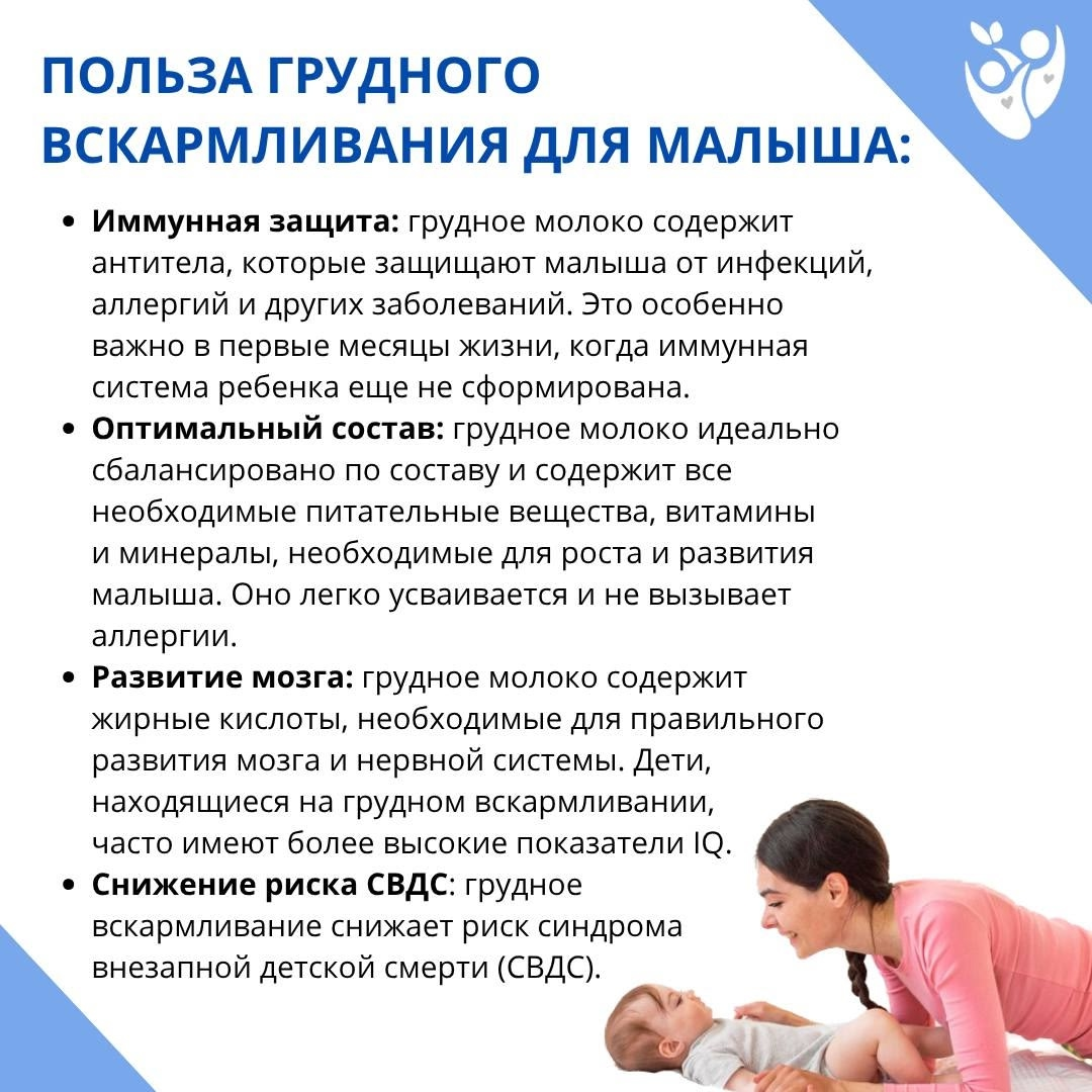 Грудное вскармливание — это один из самых эффективных способов обеспечения здоровья и выживаемости детей.  Оно является залогом здоровья и благополучия ребёнка, а его положительный эффект сохраняется на протяжении всей жизни!